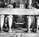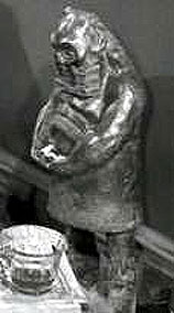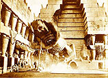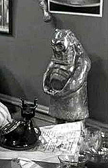 I don't know how many times I've seen Sunset Boulevard (1950). I've never counted. A dozen, perhaps? More? The last time I saw it, on a DVD, I noticed something that I never caught in previous viewings. In the scene in which Joe Gillis (William Holden) goes to Artie Green's apartment (Jack Webb, who was soon to become a huge TV star in his show Dragnet) on New Year's Eve, he wants to use the phone to call Max von Mayerling (Erich von Stroheim), to have him send all of Gillis' clothes to Artie's house. He's decided to move out of Norma Desmond's mansion on Sunset Boulevard and stay at Artie's until he gets his bearings. Two blondes are sitting on the couch, laughing hysterically as one of them is talking on the phone, which is on a side table next to the couch. On the table, in the lower right hand corner of the screen, there is something else, which I never paid attention to. After seeing the film umpteenth time, I realised it was a model for the statue of Dagon in the temple that Samson brings down in Samson and Delilah (1949). Samson and Delilah was made for Paramount, as was Sunset Boulevard, and shot around the same time. In the huge temple seen on the screen at the end of the movie – the famous set piece of Samson bringing down the temple – there is a roaring fire in Dagon's belly. A nice little touch, barely visible in Sunset Boulevard, are cigarette butts stubbed out in the belly of the Dagon maquette.